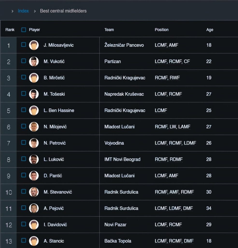 Prema analitičkim i skauting platformama StatsBomb i Wyscout, posle šest odigranih kola, Milosavljević ima najbolje rangiran indeks od svih centralnih veznih igrača u Superligi.