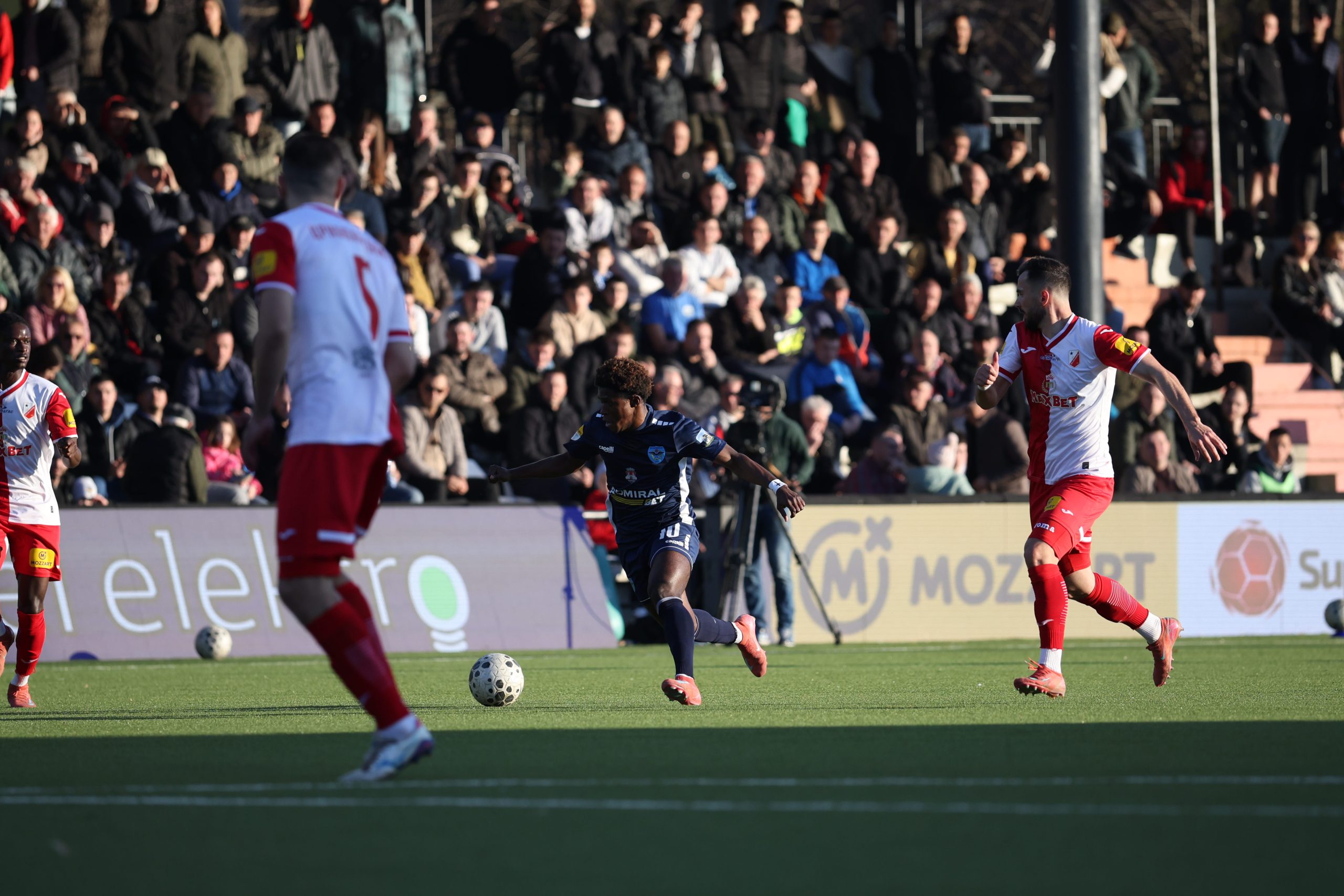 Vrlo brzo je domaći tim došao i do prve prilike za gol – Karikari je šutirao iskosa sa desne strane, ali je golman Rosić sproveo loptu u korner.