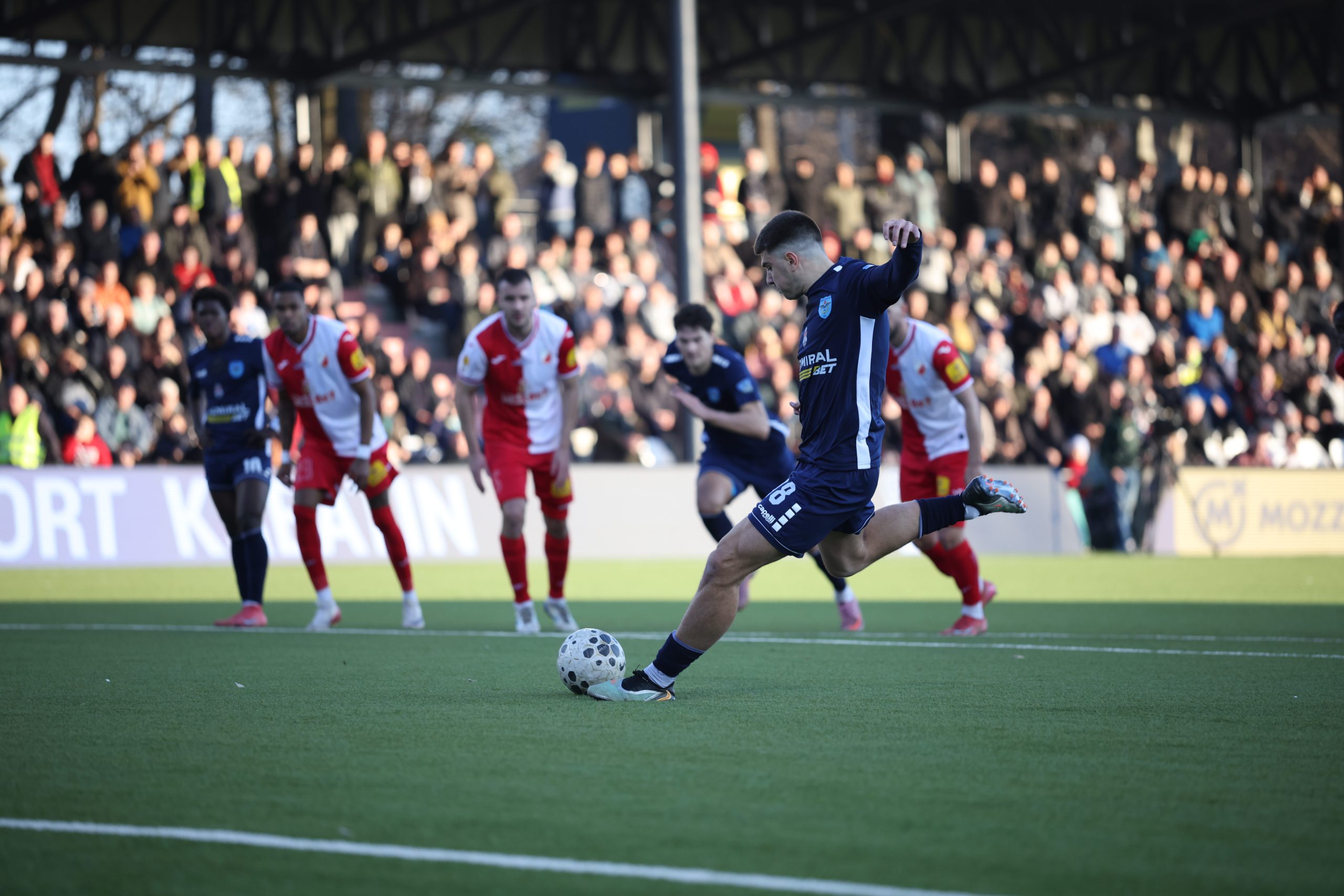 Ono što domaći igrači nisu uspeli u tri navrata, jesu u četvrtom. Posle prekršaja nad Džasperom u šesnaestercu, sudija je pokazao na penal, a siguran izvođač bio je Stefan Pirgić za prednost Železničara u 26. minutu.